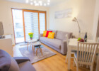 Apartament znajduje się na ostatnim 3 piętrze, w odległości 50m od morza. Nasz 2 pokojowy apartament jest w stanie pomieścić max. 5 osób. Na wyposażeniu apartamentu znajduje się m.in.: